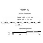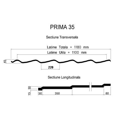 Produs cu profilatie joasa, tigla metalica Prima 35/40 este disponibila intr-o gama de 17 culori clasice, cu acoperire PE si MPE.